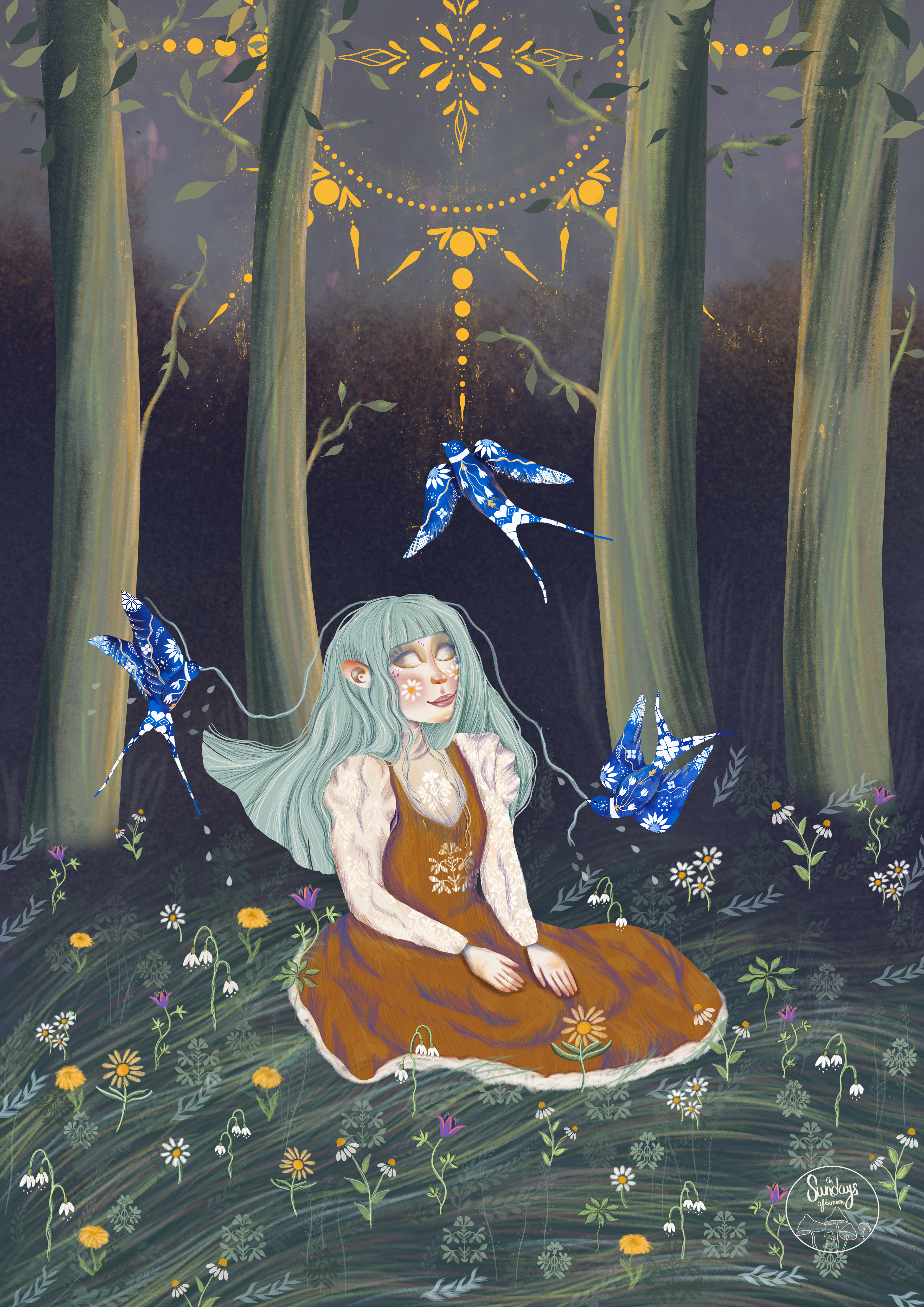 These drawings tell stories of forgotten creatures, wandering souls, and the delicate thread between magic and nature.